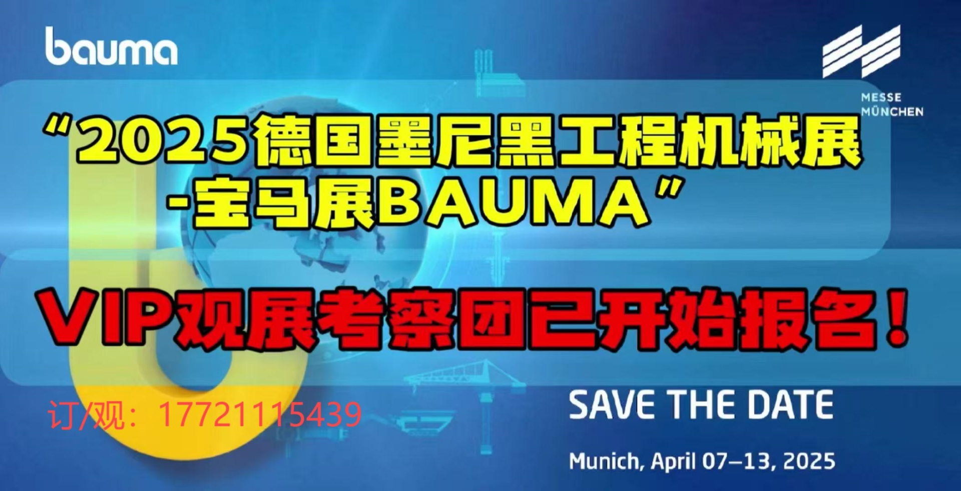 展会介绍: 德国慕尼黑工程机械展(bauma)是全球规模最大、国际影响力最强的工程机械、建材机械和矿山机械行业专业展览会。下一届展会将于2025年4月7日至13日在慕尼黑举行,展期为七天。此次展会由慕尼黑国际展览集团主办,旨在为全球工程机械行业提供一个展示最新技术和产品的平台。 在上届的bauma 2022展会上,总展览面积达到了61万平方米,吸引了来自60个国家的3227家参展商,其中包括众多国际知名企业。观众人数也创下新高,达到495.132人,展示了该展会在行业内的重要地位和广泛影响力。 本届展会的展品范围涵盖建筑工地相关设备,包括建筑工程车辆、起重及输送设备、混凝土机械等。此外,还包括采矿与原材料开采设备、建材生产机械及其配件,以及各类服务供应商所提供的解决方案。这些展品将集中展示当前行业内的创新技术和发展趋势,为参展商与观众之间搭建良好的交流平台。