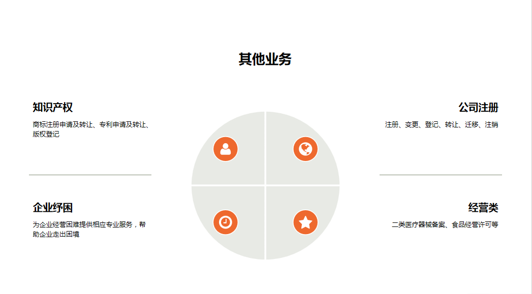 公司注册:注册、变更(法人 / 股东 / 名称 / 监事等)、登记、迁移、转让、注销服务